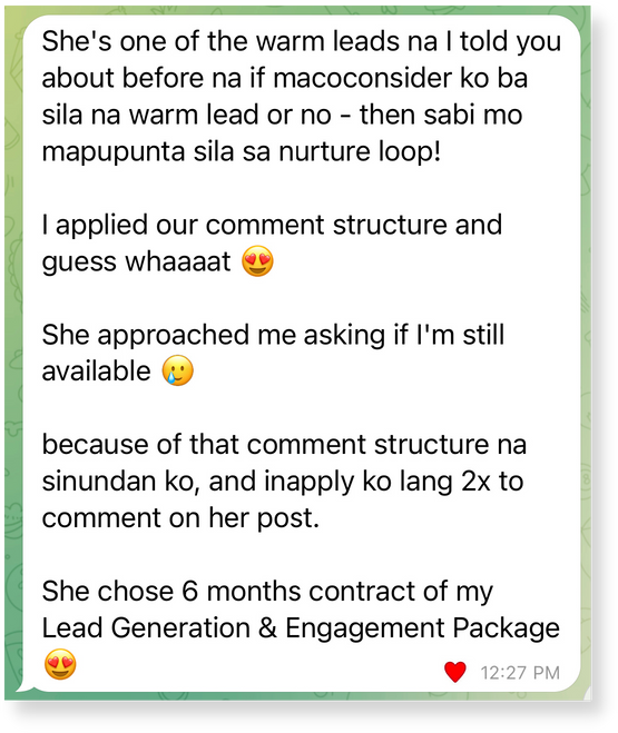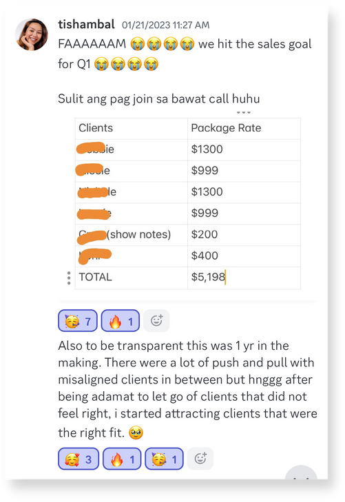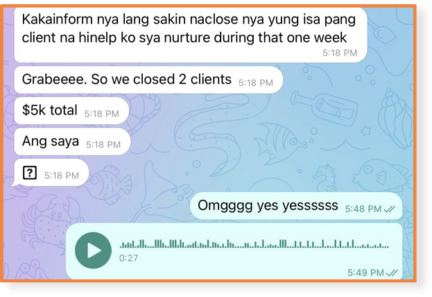 Aside from that, I transitioned from being a Social Media Manager to becoming a DFY sales specialist helping expanding coaches build authentic relationships with their community and closing high-ticket sales.